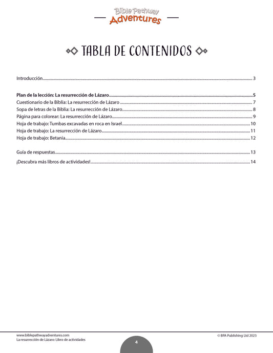La resurrección de Lázaro: Libro de actividades (PDF)