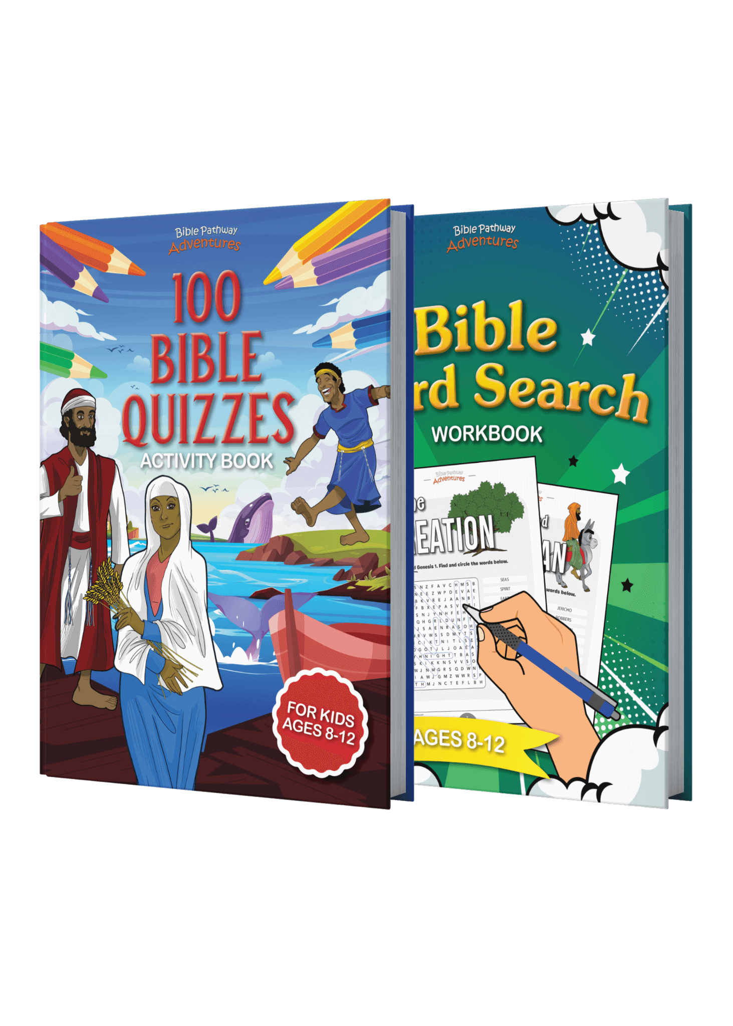 Make Bible study fun and engaging with this Bible Quiz and Word Search Workbook BUNDLE designed for children ages 8-12. This 2-book bundle contains a PDF Bible Word Search Workbook, featuring over 100 puzzles, and a PDF 100 Bible Quizzes Activity Book, providing hours of learning while strengthening biblical knowledge.
