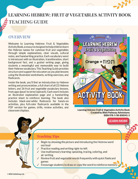 Learning Hebrew: Fruit & Vegetables Activity Book for Beginners (PDF)