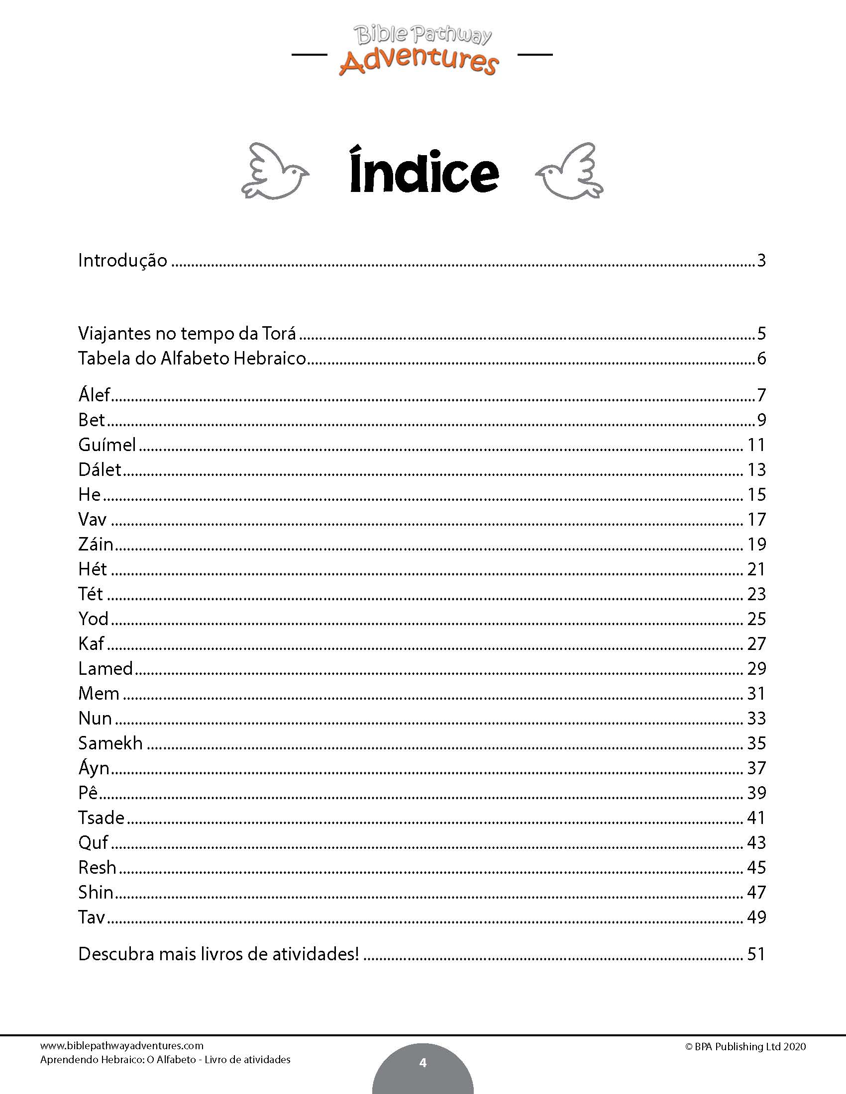 O Livro de Atividades do Alfabeto Hebraico inclui: