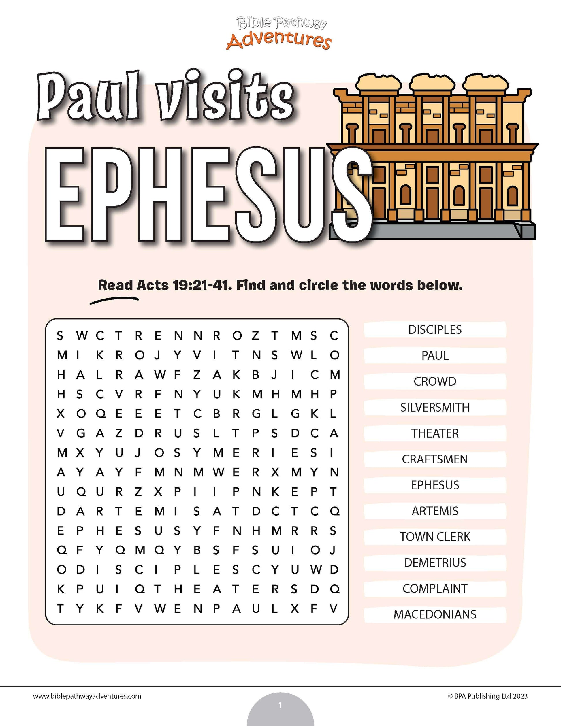 Paul visits Ephesus word search