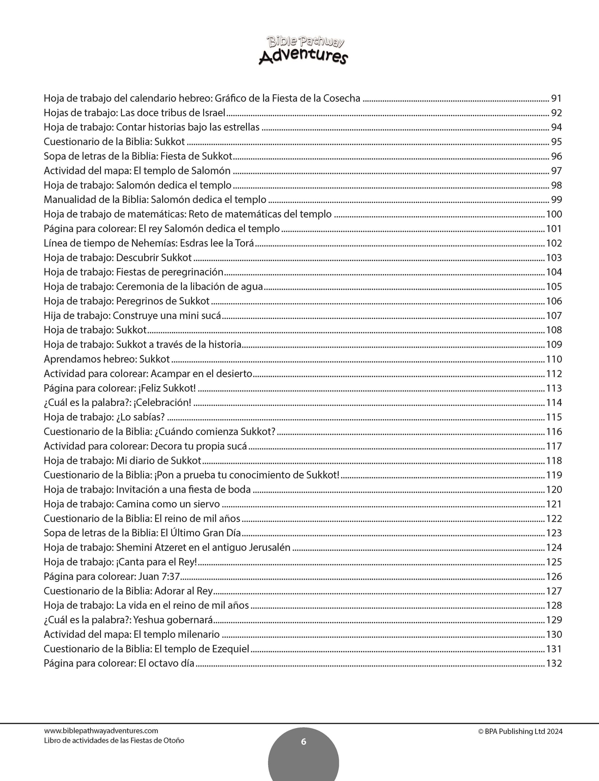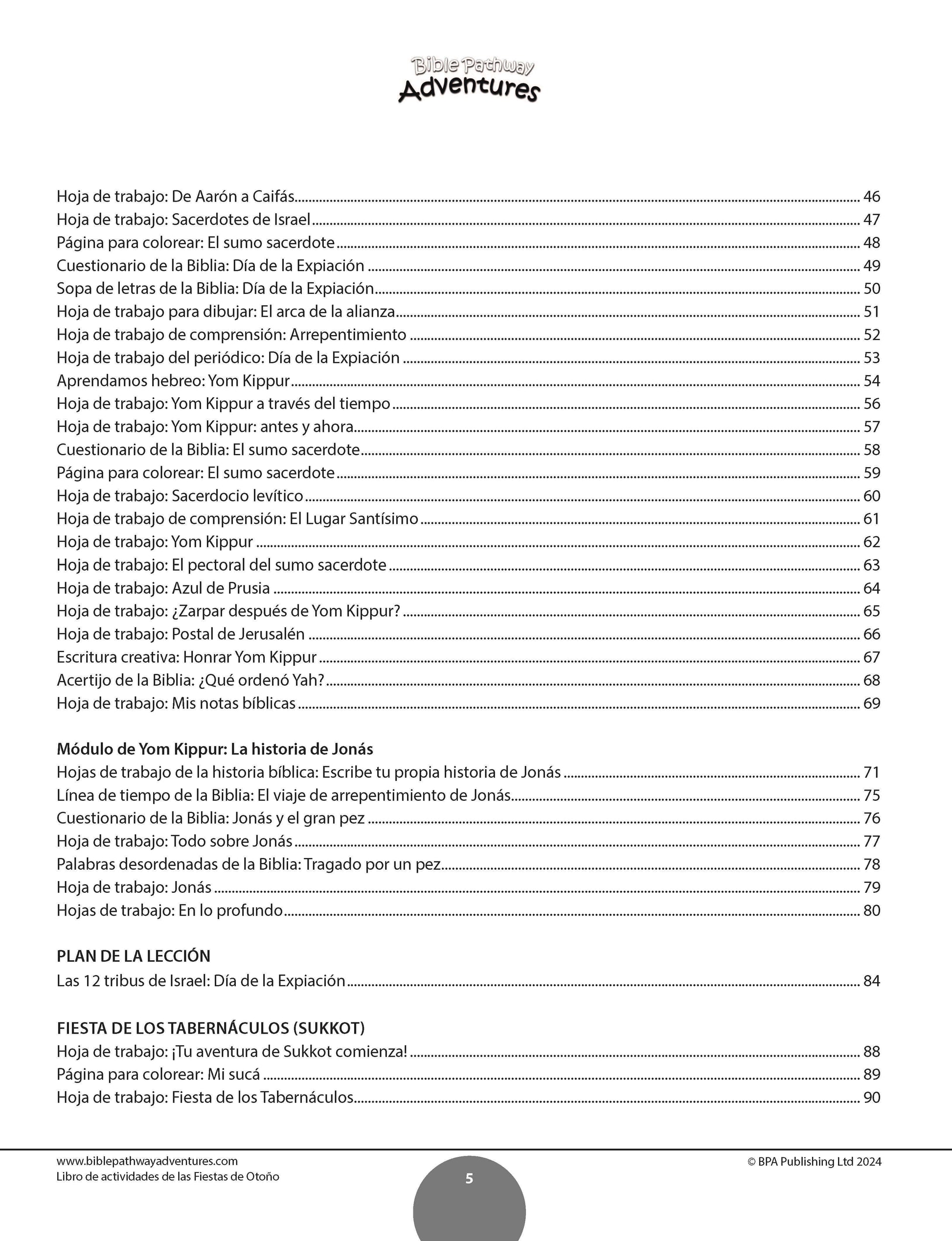 Los niños aprenderán los orígenes, costumbres y significados de las fiestas a través de páginas para colorear, rompecabezas, hojas de trabajo y manualidades. Contiene referencias de las Escrituras para buscar fácilmente versículos de la Biblia, ilustraciones originales de Bible Pathway Adventures y una guía de respuestas detallada para educadores.
