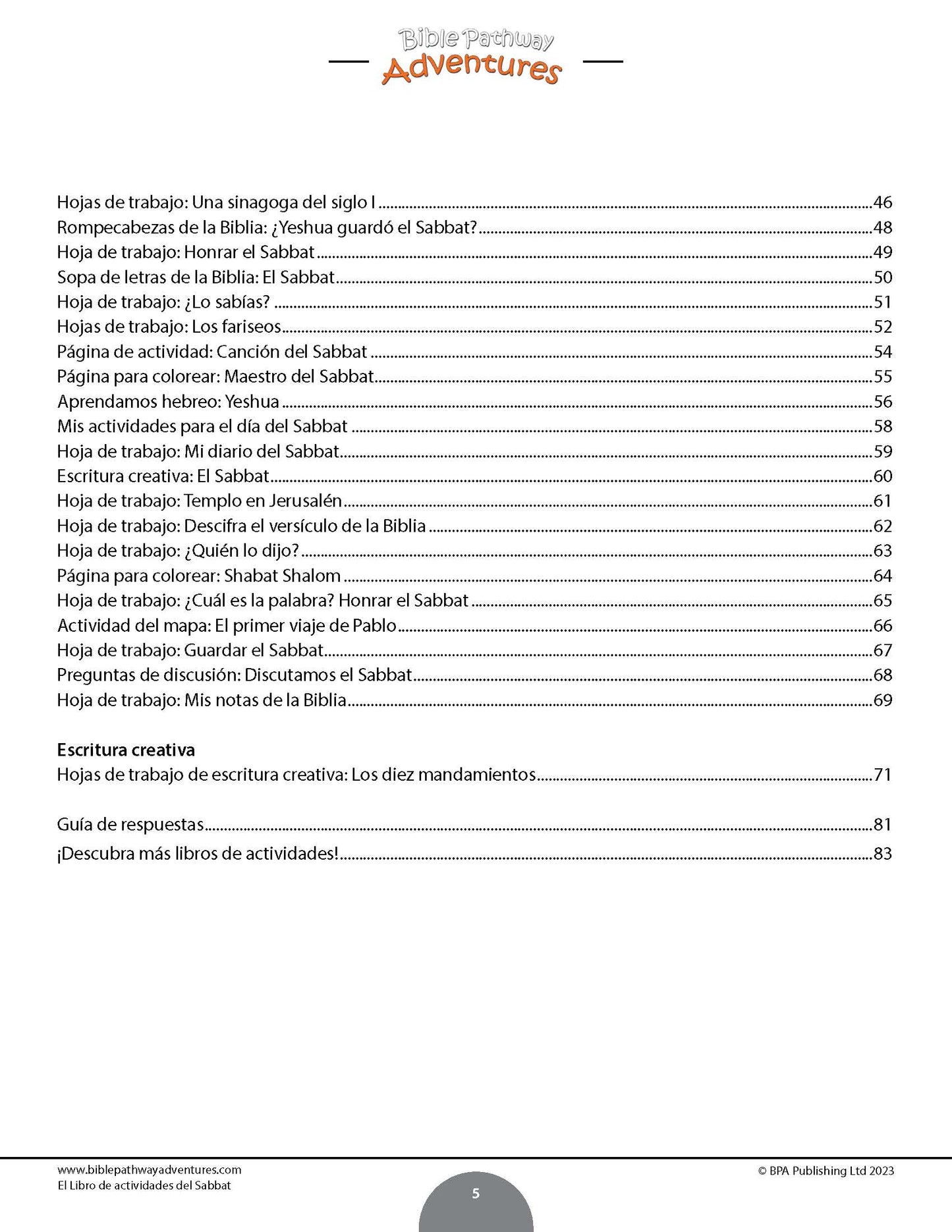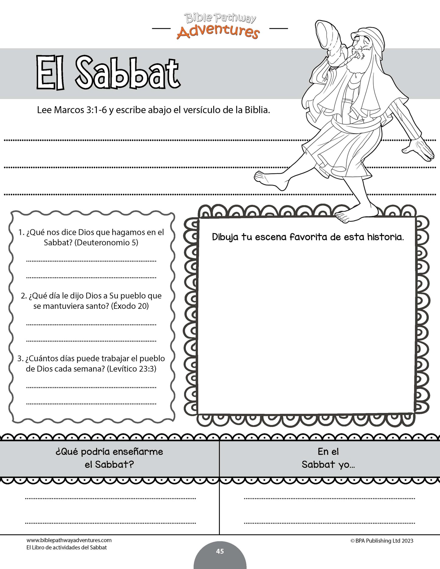 Diseñado para promover un discipulado impactante, este libro de actividades incluye preguntas de discusión que alientan a los niños a profundizar en la Biblia y sus enseñanzas. Una excelente herramienta para inspirarlos a honrar el Sabbat y dedicar tiempo a la Palabra de Dios. Este PDF incluye 83 páginas diseñadas para estudiantes de 3° a 6° grado.