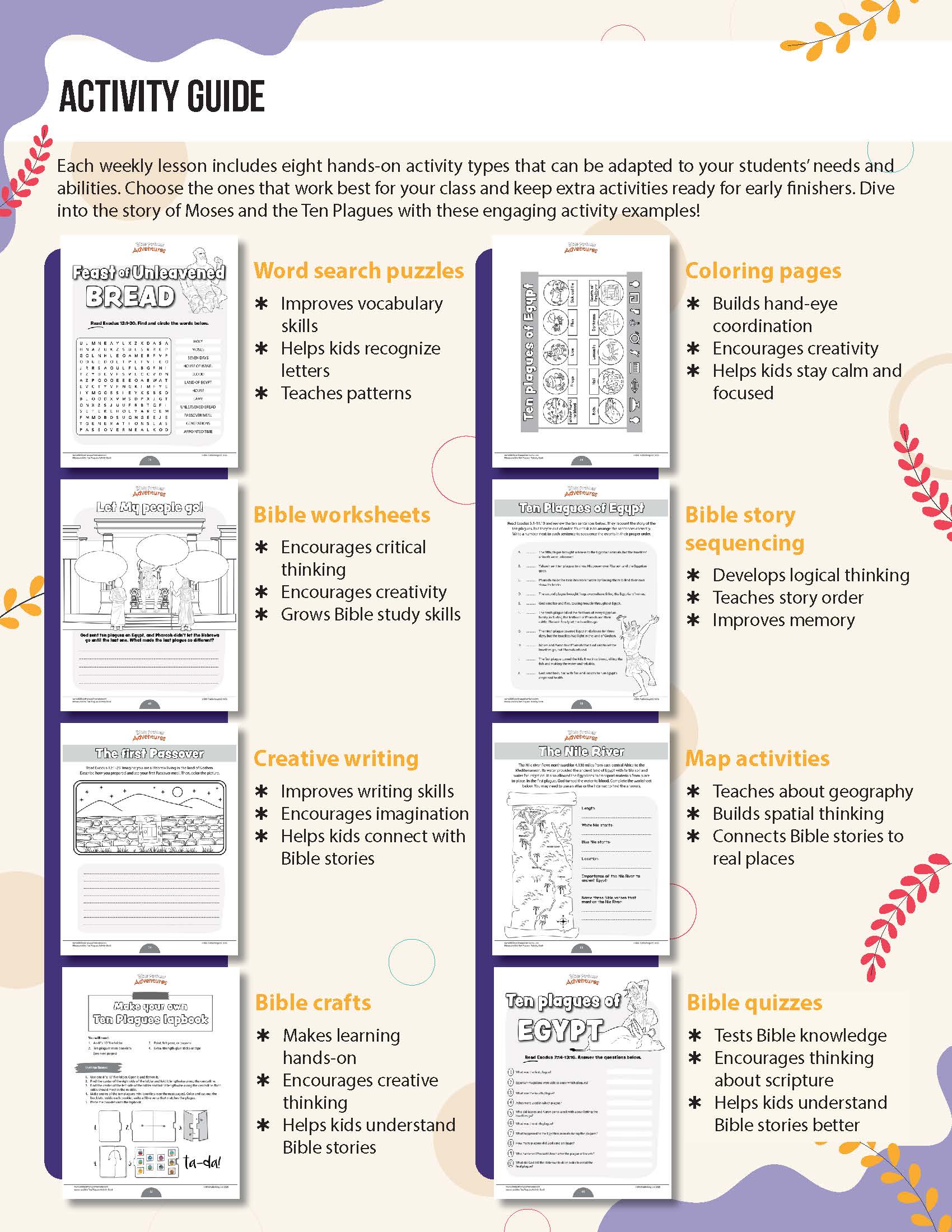 - FIVE planned-for-you lessons including Moses and the Princess, The Burning Bush, The Plagues, The Passover, and Red Sea Crossing